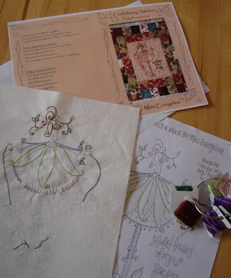 This is what I am working on at the moment, a lot of embroidery and Nathan's quilt. I have 9 rows now, only 3 to go. After I took the photo I have sewn the fabric to block 8 of the Love is BOM